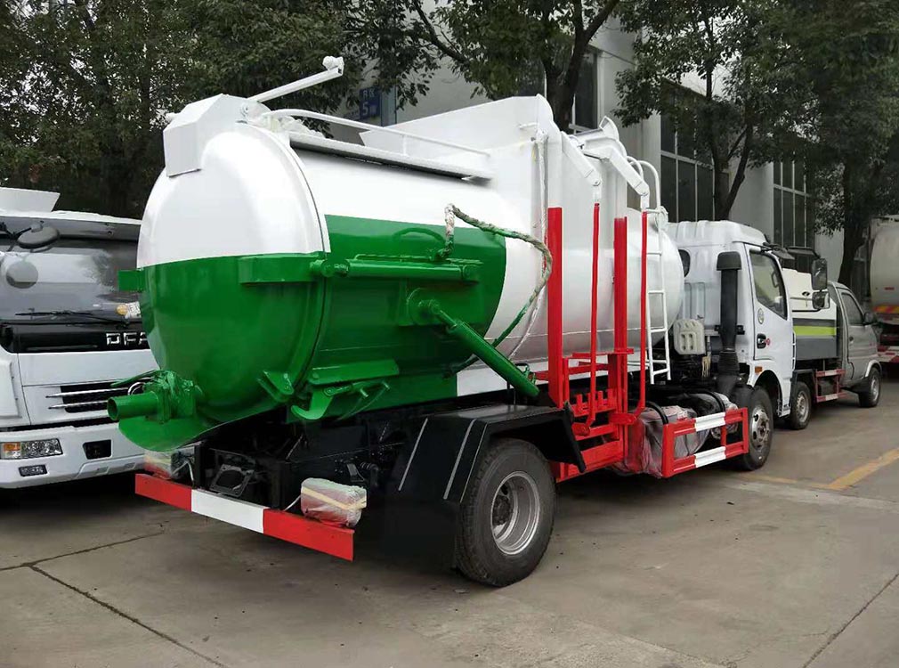 餐廚垃圾車又稱餐余垃圾車余廚余垃圾車或者泔水車,餐廚垃圾車是垃圾車中的一種,是用于收集和運輸生活垃圾、食品垃圾(泔水)及城市淤泥的專用車輛。 餐廚垃圾車標準配置:圓形碳鋼罐體,罐體厚度5mm,拉桿提升機帶上蓋聯(lián)動;后蓋液壓開啟;罐體舉升自卸。選裝內(nèi)軒推鏟卸料,帶渣液分離功能。餐廚垃圾車可分罐式和廂式。 餐廚垃圾車特點:改裝部分具有裝、卸垃圾自動化程度高、工作可靠、密封性好、裝載容積大、操作簡便、作業(yè)過程密閉,無污水泄露和異味的散發(fā),環(huán)保性好等特點?膳溲b載不同規(guī)格的標準垃圾桶,具有廣泛的適用性。餐廚垃圾車高效、清潔的是垃圾收、運專用車輛。
